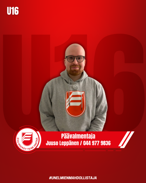 EVUn U16-joukkueen päävalmentaja kaudelle 26-27 on Juuso Leppänen.