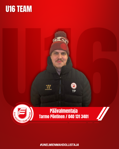 U16 Teamin päävalmentaja kaudelle 26-27 on Tarmo Pöntinen.