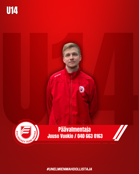 U14-joukkueen päävalmentaja kaudelle 26-27 on Juuso Vuokio.
